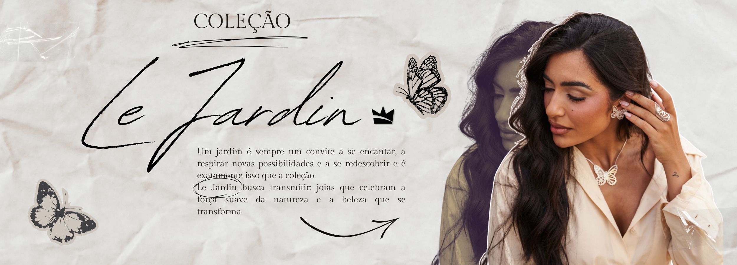 CL004ST - COLAR 45CM 3 BORBOLETAS CRAVEJADAS CARTIER 5CM DE EXTENSOR