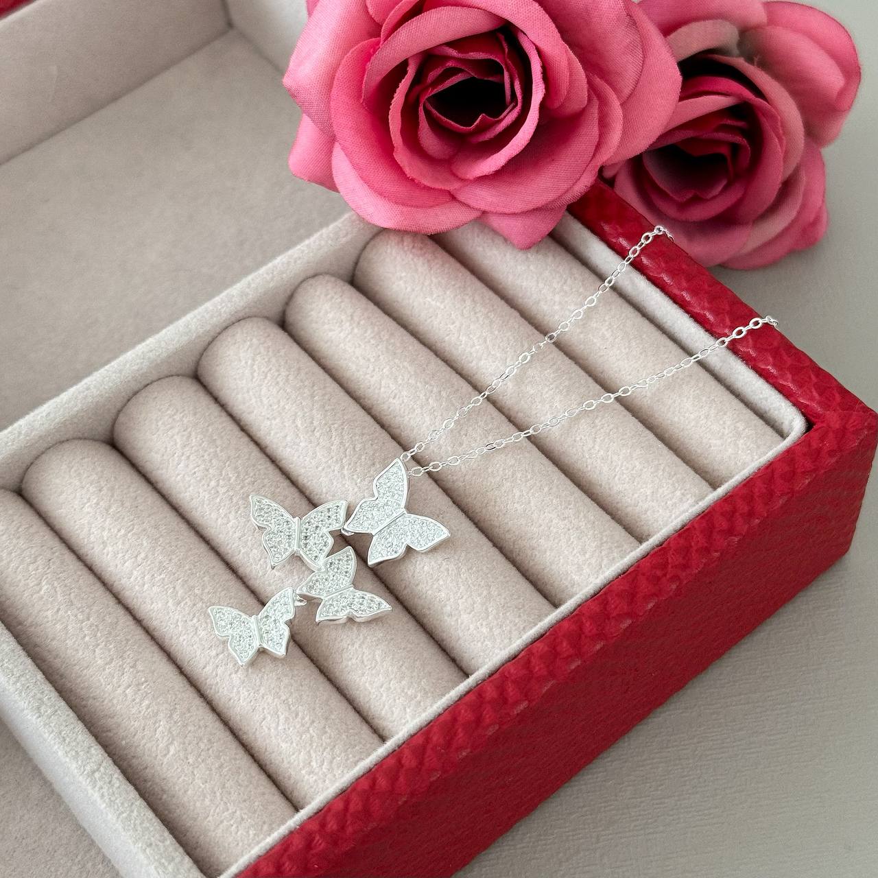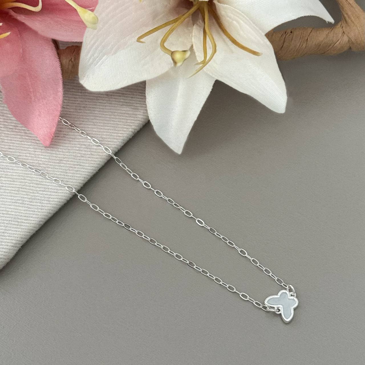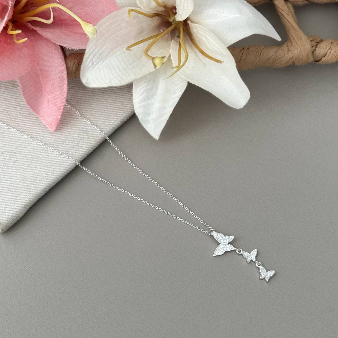 CL4113ST - COLAR 45CM 4 BORBOLETAS CRAVEJADAS ELO PORTUGUES
