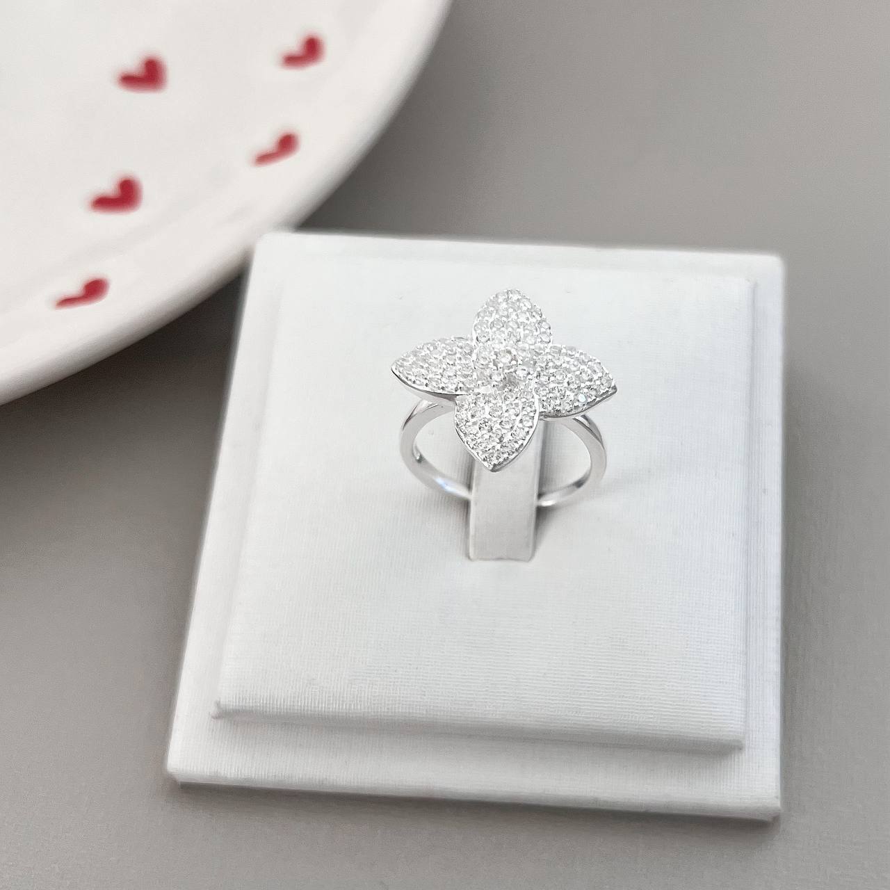 AN0042.2ST - ANEL FLOR 3 CORAÇÕES CRAVEJADOS