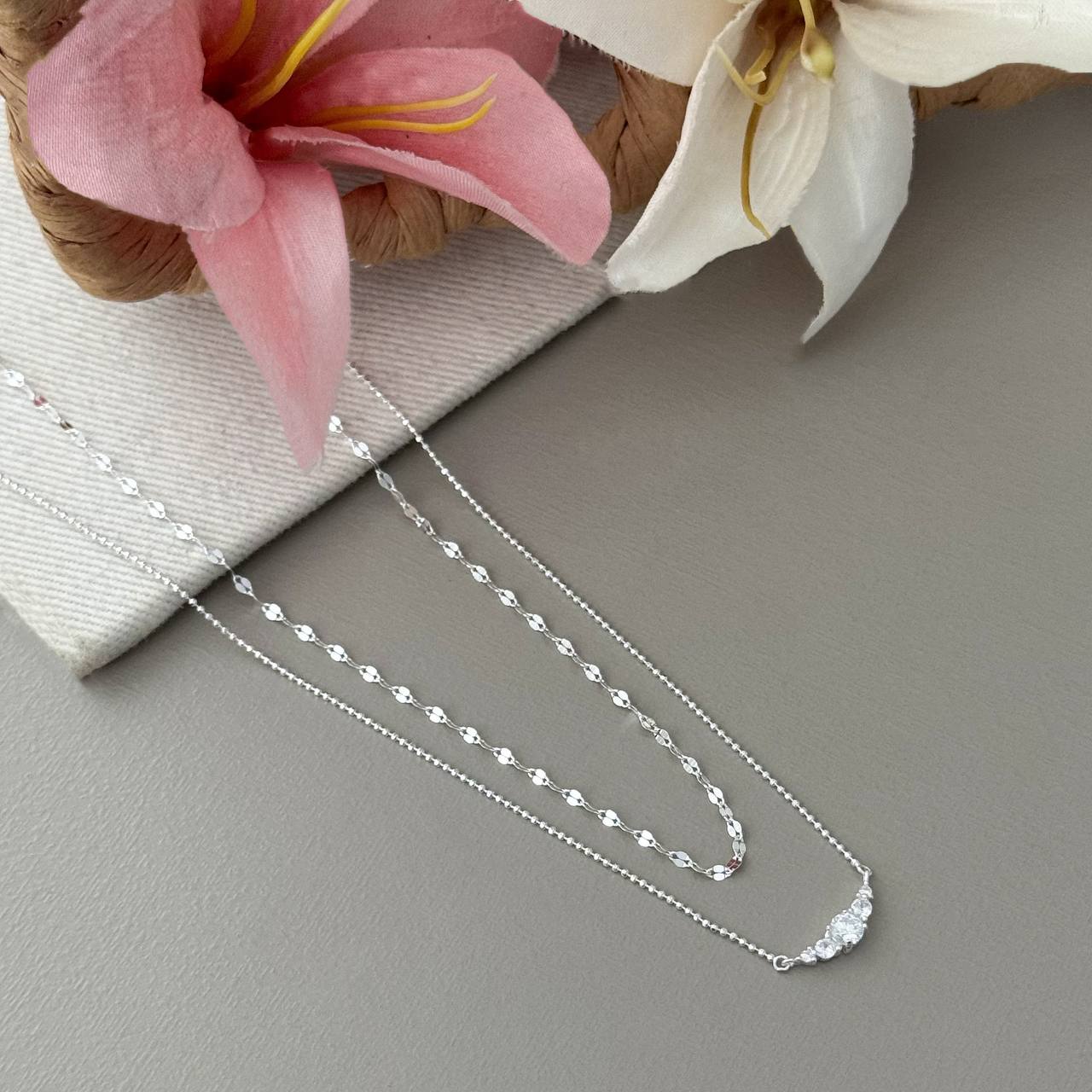 CL4609ST - COLAR 45CM DUPLO 4 ZIRCONIAS BOLINHAS/CARTIER 5CM DE EXTENSOR