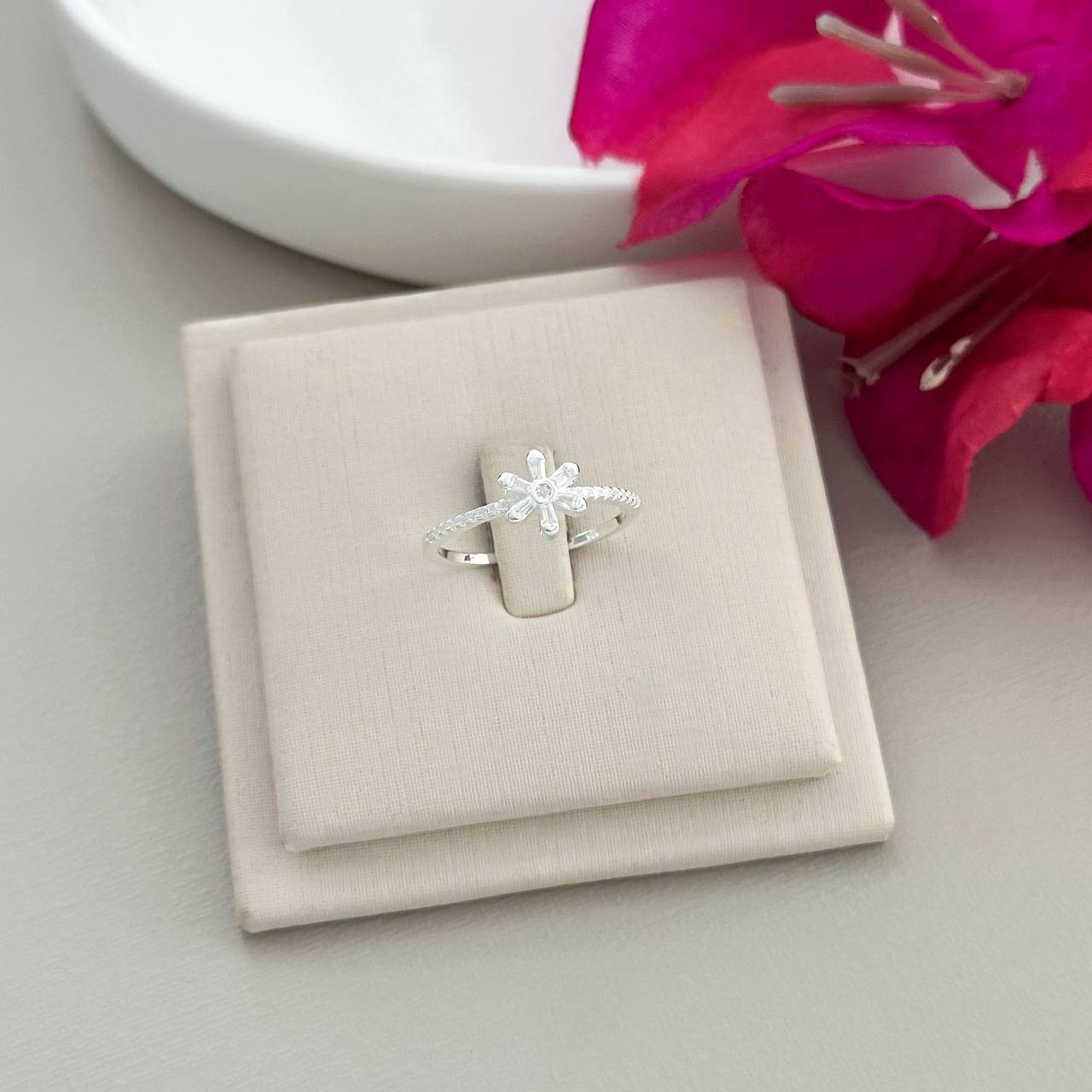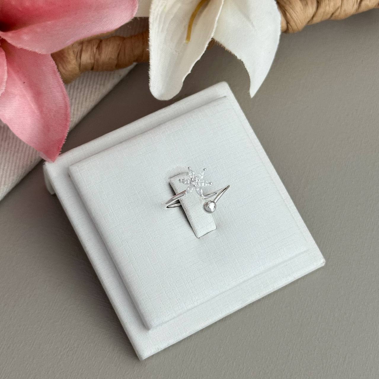 AN00660ST - ANEL CRAVEJADO FLOR 5 PETALAS