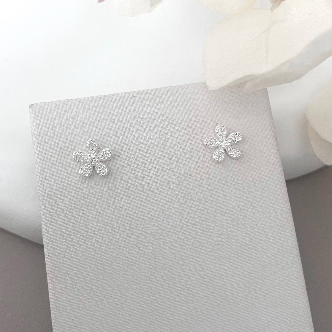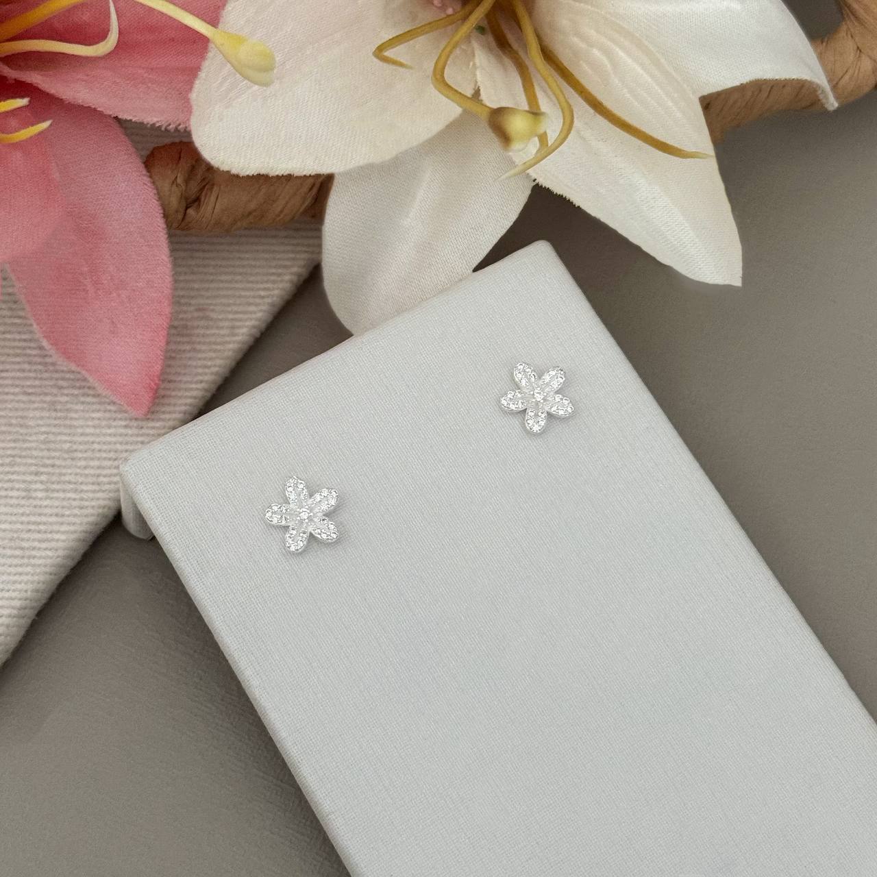 BR89090ST - BRINCO FLOR 5 PETALAS CRAVEJADA 8,6MM