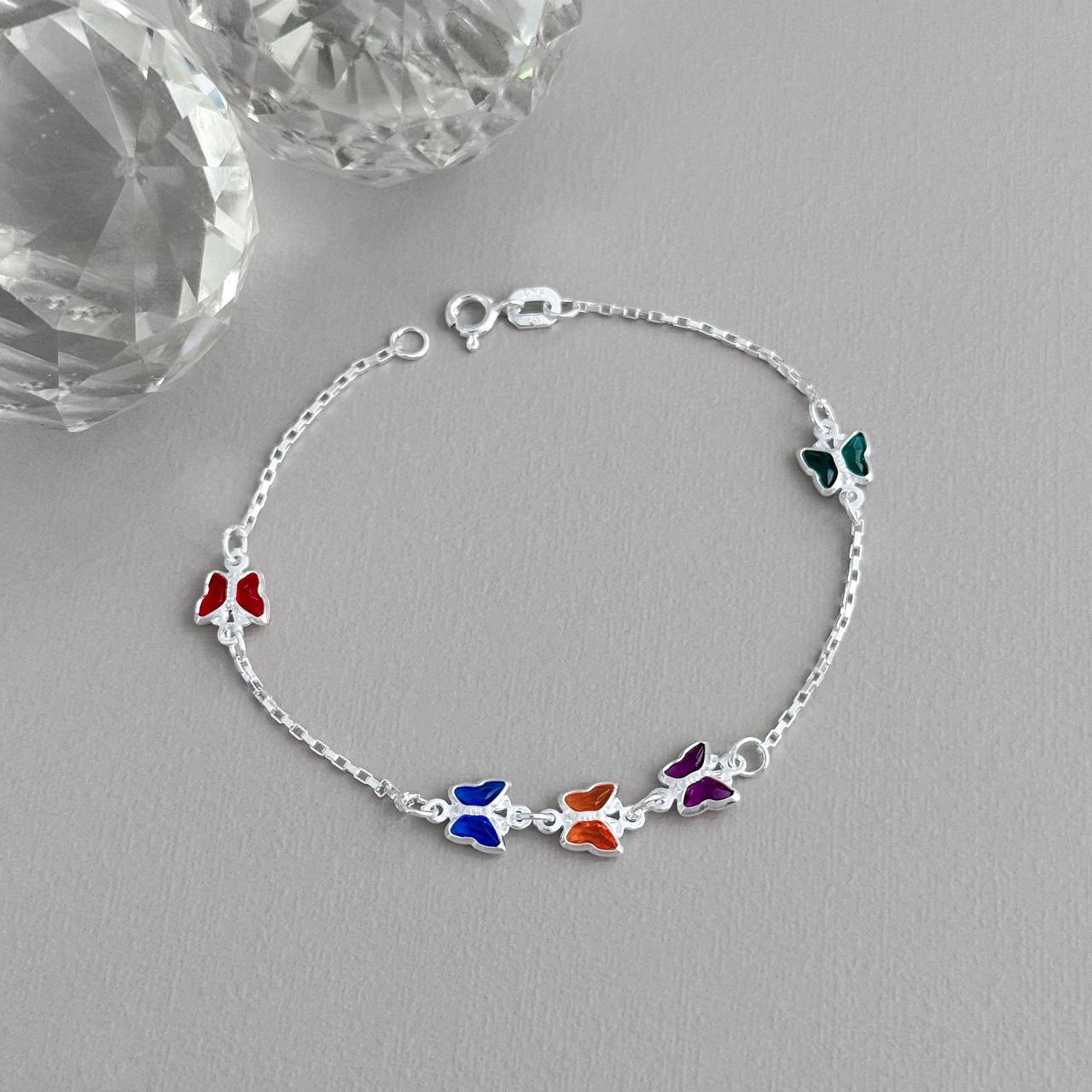 PU2815.ST - PULSEIRA 1 BORBOLETA C/ BOLINHAS EM VOLTA ELOS 19CM