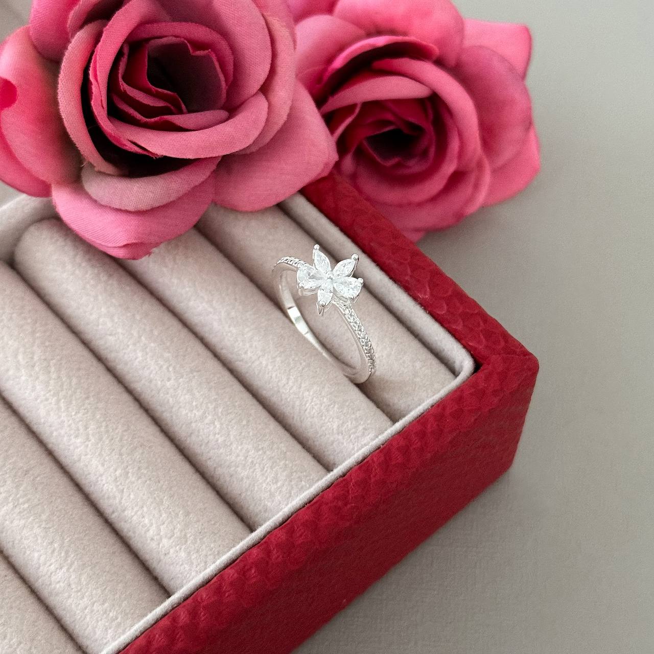AN3899ST - ANEL FLOR 5 PETALAS CRAVEJADO
