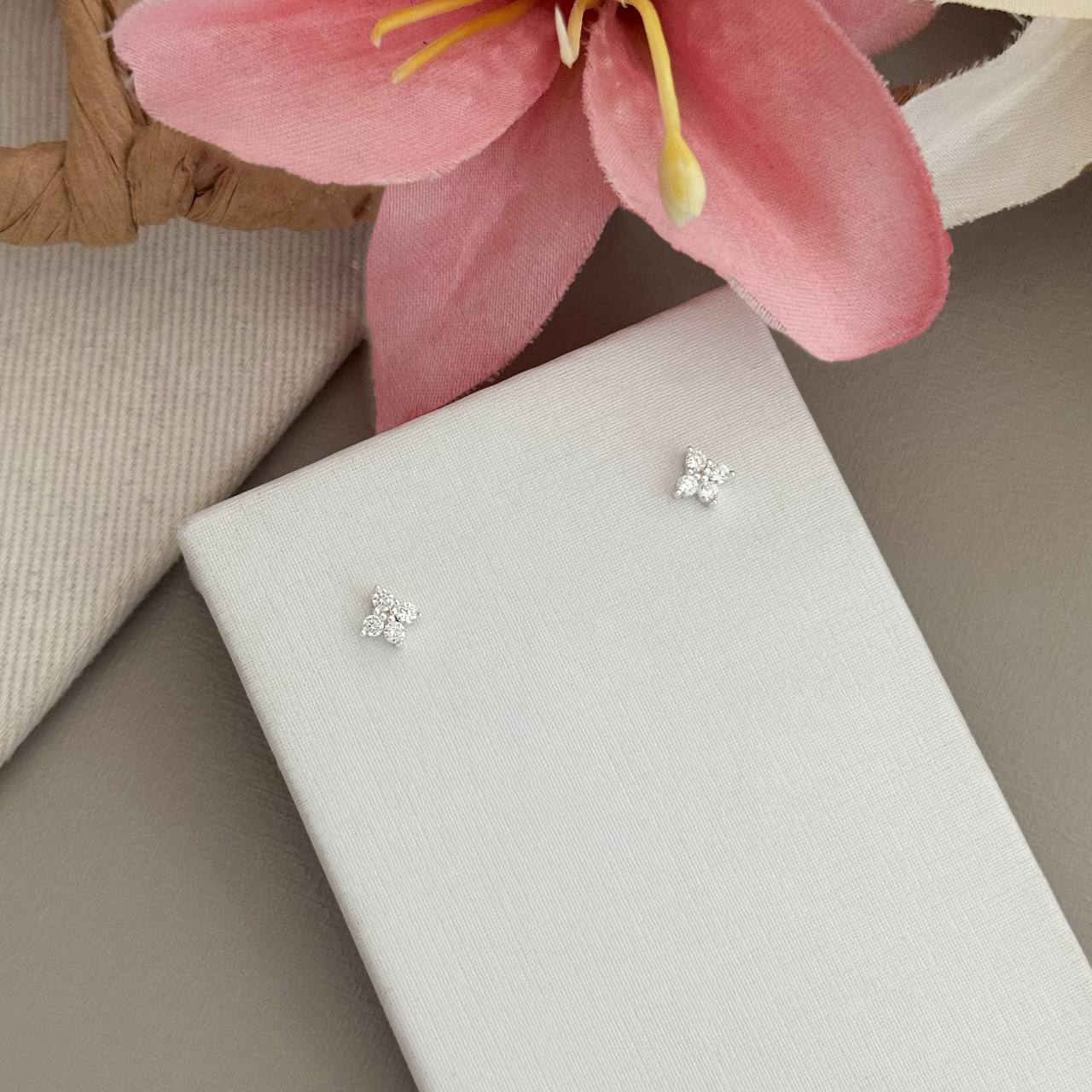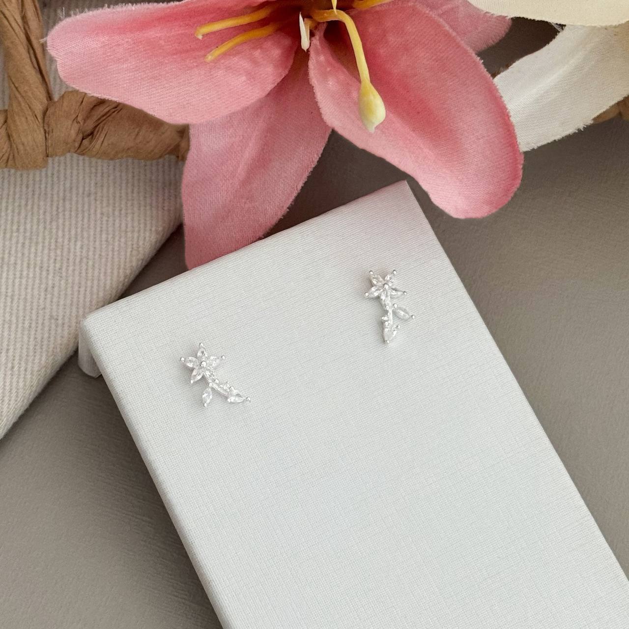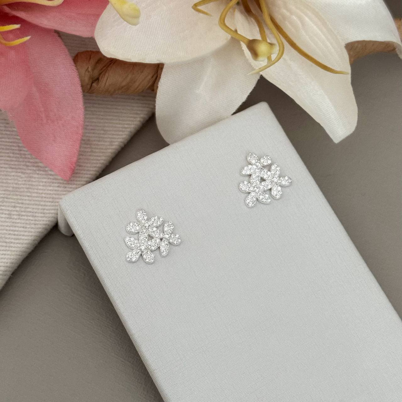 BR10749ST - BRINCO FLOR C/ RAMO DE ZICONIAS 1,2CM
