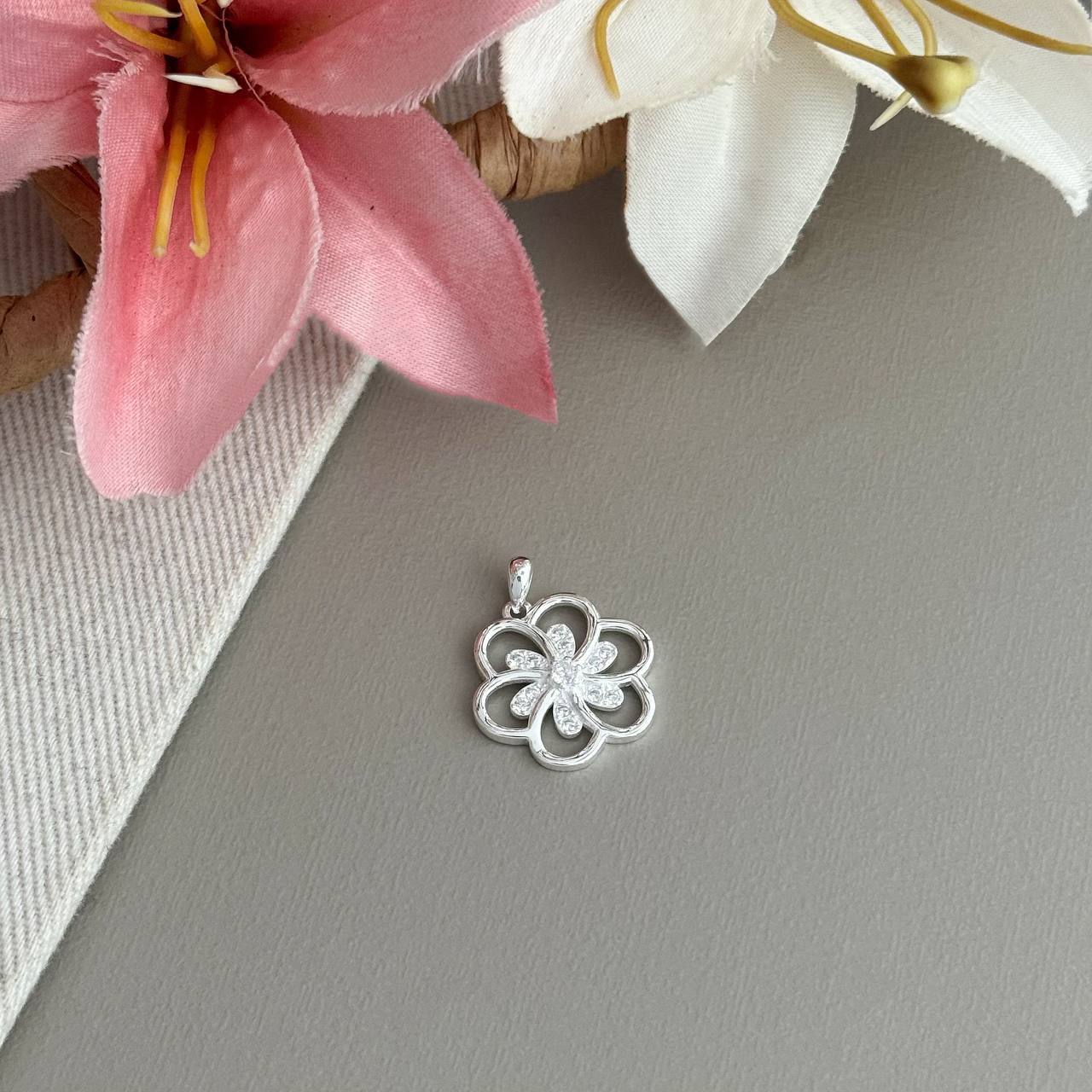 PG9620ST - PINGENTE FLOR C/ ZIRCONIAS 1,9CM