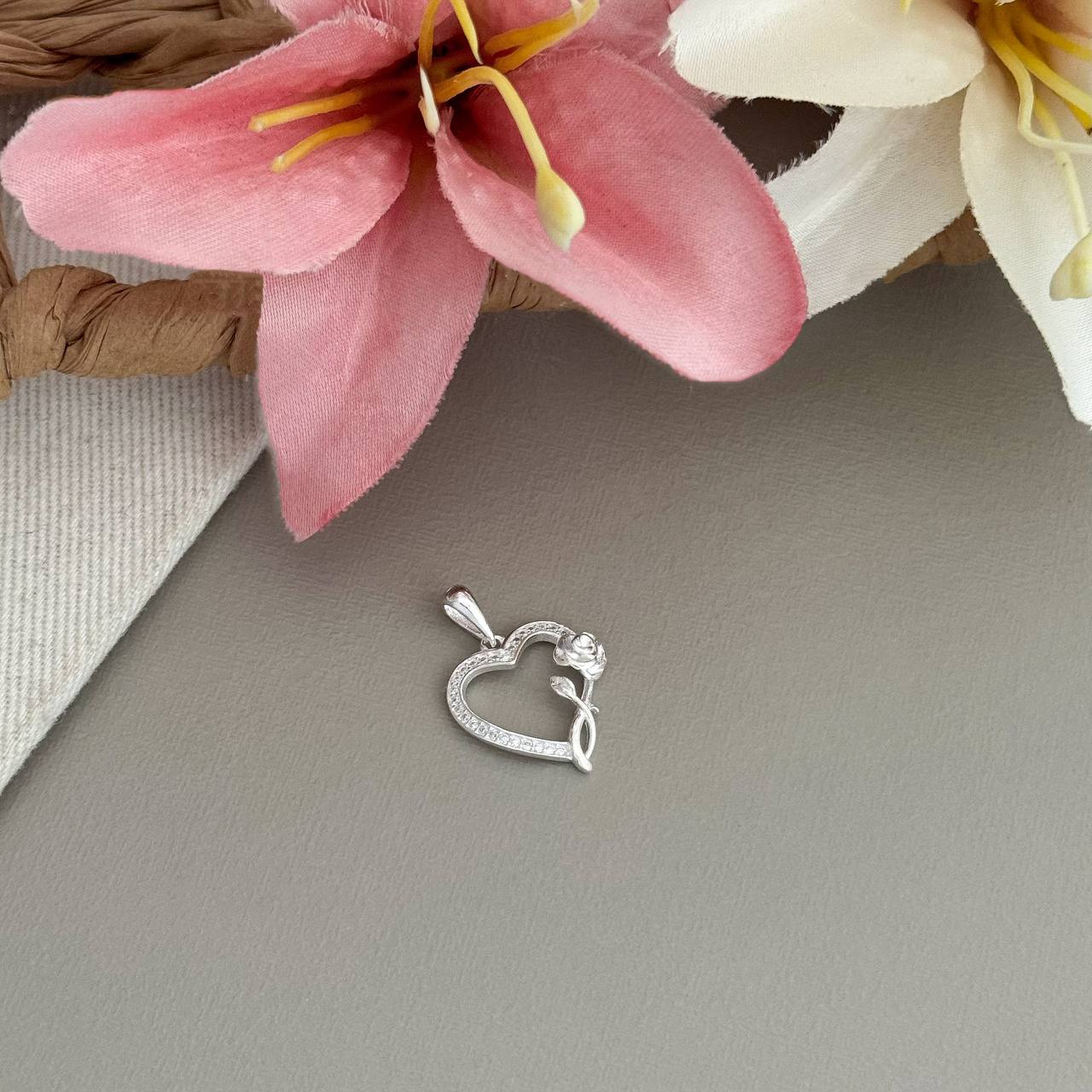 PG6255ST - PINGENTE CORAÇÃO VAZADO C/ ROSA 1,9CM