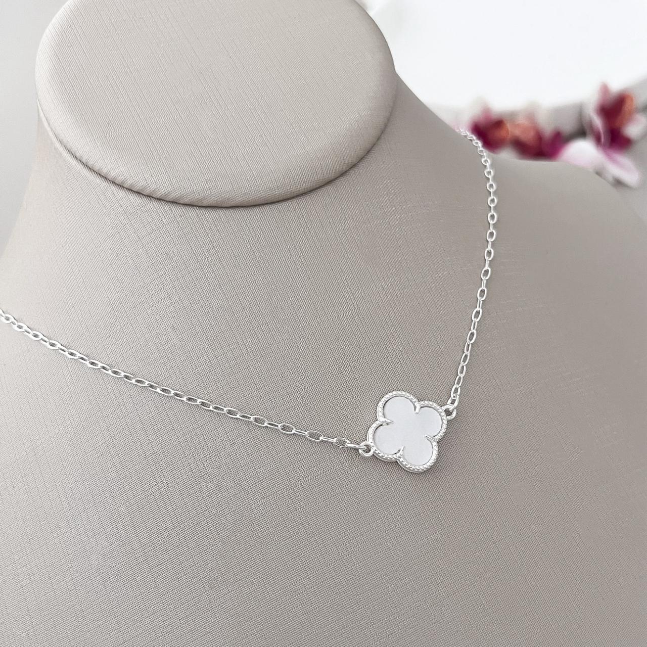 COLAR 45CM TREVO MADREPEROLA 1,3CM C/ BOLINHAS EM VOLTA CARTIER